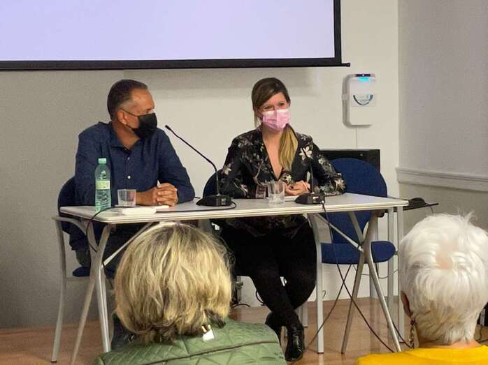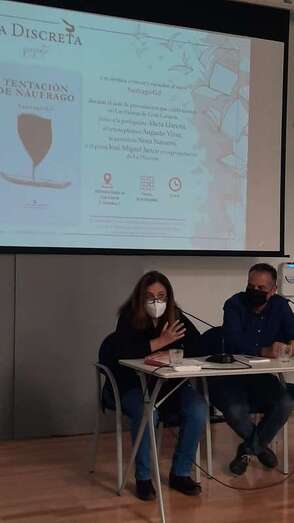 Seguidamente, Alicia Llarena esbozó algunos de los argumentos que recoge en el prólogo de Tentación de naúfrago y, por último, la periodista Nora Navarro entrevistó al autor adentrándose en la temática del poemario y también en sus referencias vitales y literarias.
