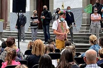 El clown Mr. Tie ofreció una actuación este sábado por la mañana en la plaza de San Gregorio, en el marco de las actividades programadas por la Concejalía de Cultura y la empresa municipal Gestel para el mes de diciembre.