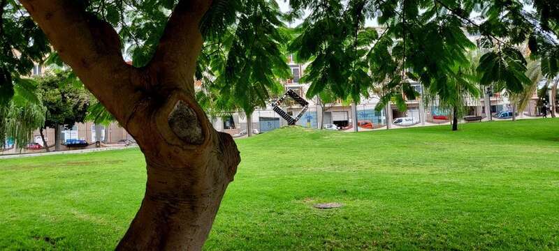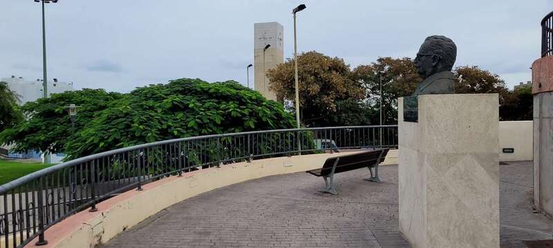 Y así entre los diferentes niveles y terrazas que ocupan este espacio urbano en los límites de La Data, El Ejido y La Barranquera que, bordeado por los accesos de calles cuyos nombres y títulos nos recuerdan a personajes de nuestra cultura y libertades, Ejido, Secundino Delgado, Pepe Damaso, Antonio Bethencourt y Massieu (Catedrático), San Isidoro, Avenida del Movimiento Ciudadano, que seguían los antiguos terrenos que fueran huertas, entre las luces y sombras que acompañan a su primer objetivo de espacio público para el ocio, como conservación, servicios, y mantenimiento, observo las diferentes esculturas que nos dan lectura, memoria, mensaje y homenaje de sus representados.