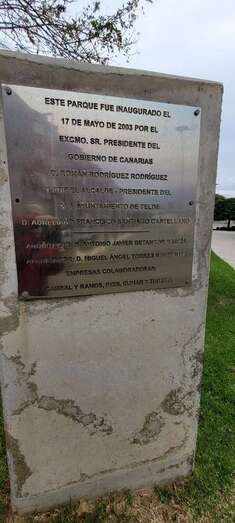 Una placa situada en la entrada a los jardines recuerda la inauguración un 17 de mayo de 2003, por el Excmo. Sr. Presidente del Gobierno de Canarias D. Román Rodríguez Rodríguez y por el Alcalde-Presidente del M. I. Ayuntamiento de Telde D. Aureliano Francisco Santiago Castellano.