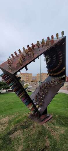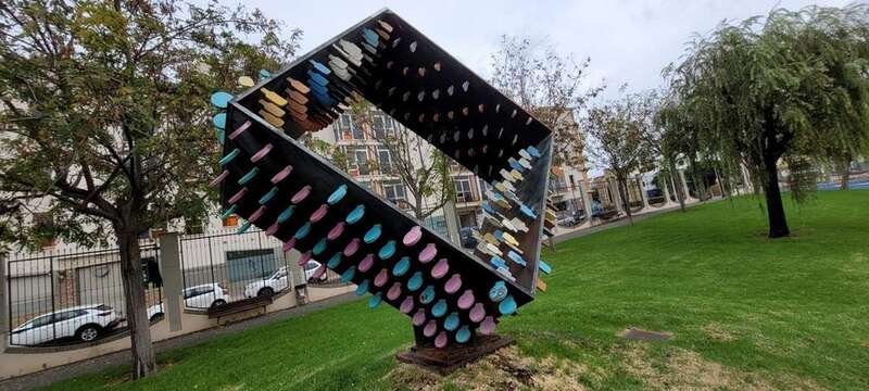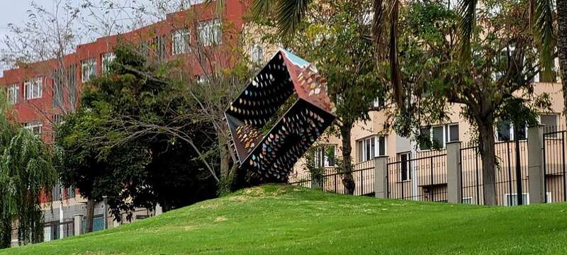Cerca del acceso por la calle Ejido encontramos una curiosa escultura titulada Torso, realizada en fragmentos metálicos en estado de oxidación obra del escultor madrileño Ignacio van Aerssen.