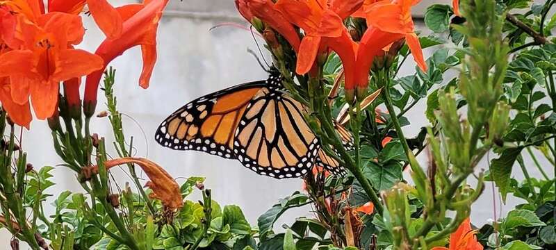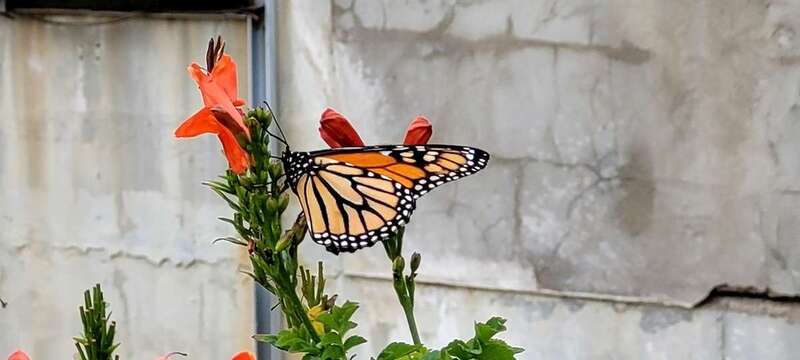 Más allá de las obras escultóricas que acabo de mencionar el paseo por los recuerdos lejanos en este parque me hacen volver la mirada en su conjunto, y aún descubro la maquinaria de un pozo que ejerció su cometido hace mucho tiempo, expresivos grafitis en paredes. Una bella mariposa Monarca revolotea donde posarse sobre unas flores en torno a mi presencia y capto las últimas imágenes del teldense Parque de San Gregorio, un espacio por el que un día ya lejano, se posaron mis huellas de infancia y adolescencia. Con frecuencia transito por sus alrededores y con el devenir del tiempo, la mirada y mis pasos regresan por los caminos que un día recorrí. Gracias.