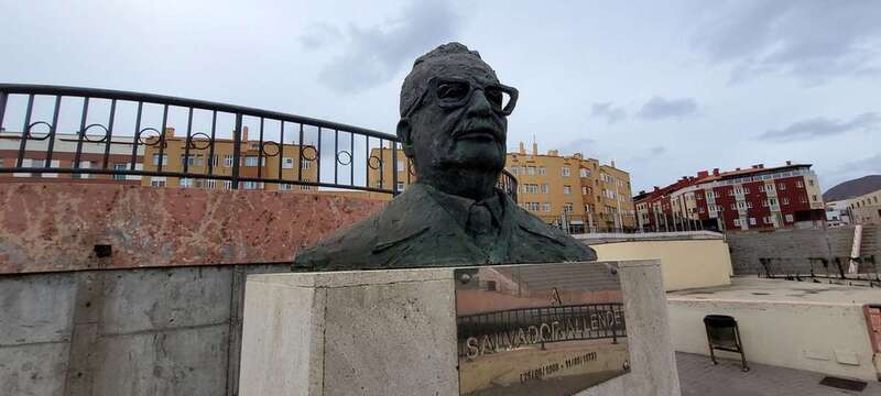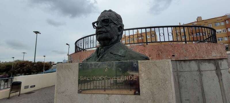 Sobre el pedestal de granito figura una placa con la dedicatoria a Salvador Allende (26/6/1908- 11/09/1973).