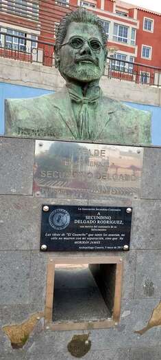 En otro nivel inferior izquierdo destaca la escultura busto de Secundino Delgado Rodríguez (La Orotava, Tenerife 1867-Tenerife, 1912), realizado por el artista plástico, pintor, escultor, Antonio Sánchez, natural de Telde, e inaugurada en mayo de 2003, ubicada sobre un pedestal en forma de pirámide horadada en su parte central, con la imagen de las Islas Canarias y sobre una placa: Telde en Homenaje a Secundino Delgado Padre del Nacionalismo Canario, en otra placa la Asociación Secundino Centenario dedica a Secundino Delgado Rodríguez con motivo del centenario de su fallecimiento, y el lema: Las ideas de “El Guanche” que tanto les asustan, no sólo mueren con mi separación, sino que No Morirán Jamás. Archipiélago Canario, 5 de mayo de 2013.