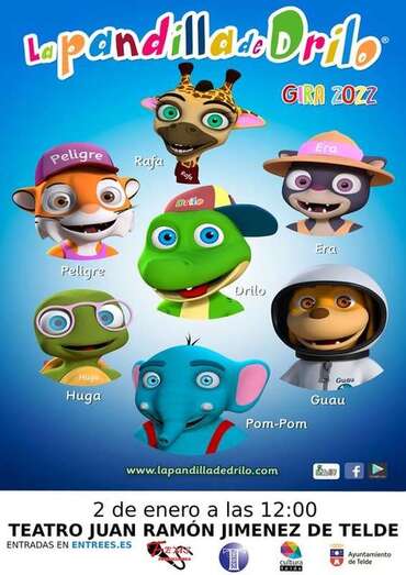 Las concejalías de Desarrollo Local y Cultura, dirigidas por Lidia Mejías y Juan Martel, respectivamente, aúnan fuerzas este domingo, 2 de enero, con el espectáculo infantil La Pandilla de Drilo, que tendrá lugar en el Teatro Juan Ramón Jiménez, a las 17.00 horas.