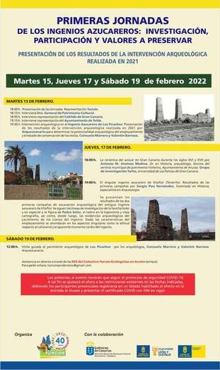 Coincidiendo con el 28 aniversario de la caída de una de las pilastras del ingenio azucarero de Los Picachos, hecho acontecido el 14 de febrero de 1994, el colectivo ecologista organizará unas jornadas sobre estas industrias del siglo XVI, en las que se presentarán los resultados de la intervención arqueológica realizada en 2021 en las ruinas de este legado patrimonial.