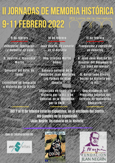 El IES Lomo de La Herradura celebra, del miércoles día 9 al viernes 11 de febrero, la segunda edición de sus Jornadas de Memoria Histórica con charlas y una exposición sobre Juan Negrín.