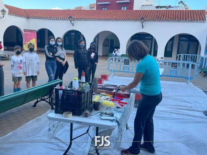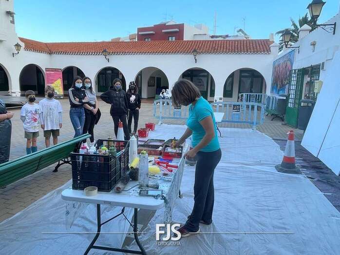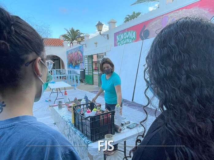 Tarde murales exprés y grafitis la de este viernes en la Casa de la Juventud de Telde en un taller organizada por el Ayuntamiento de Telde en colaboración con la asociación Mojo de Caña. en la Casa de la Cultura.
