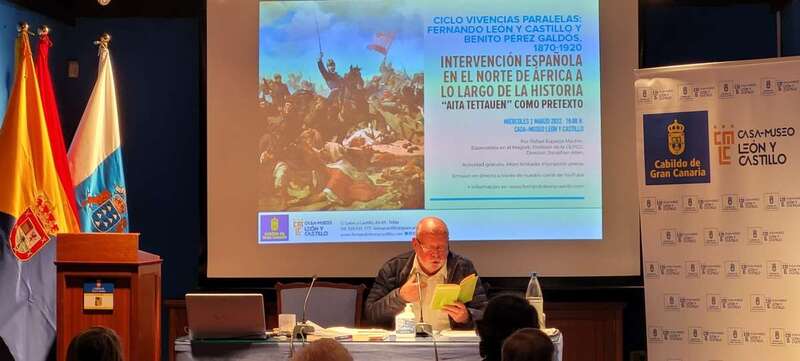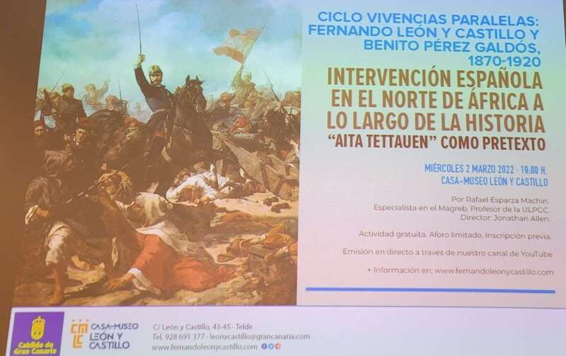 La conferencia, que toma como base el tomo Aita Tettaouen, de los Episodios Nacionales galdosianos, se enmarca en el ciclo Vivencias paralelas: Fernando de León y Castillo y Benito Pérez Galdós. 1870-1920, dirigido por el profesor Jonathan Allen