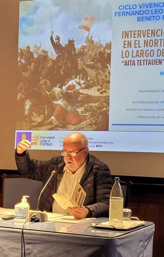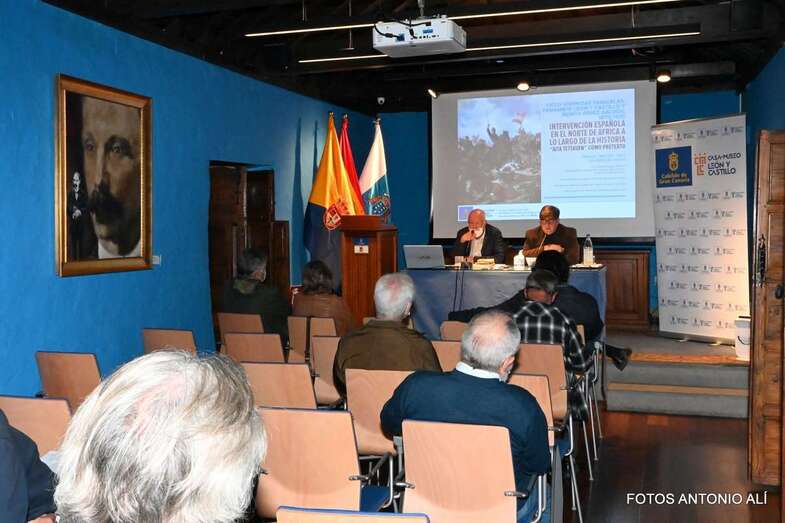 El sociólogo y economista Rafael Esparza Machín, profesor de la Universidad de Las Palmas de Gran Canaria y especialista en el Magreb, conferenció esta tarde en la Casa Museo León y Castillo de Telde sobre la intervención española en el norte de África a lo largo de la historia.
