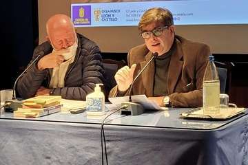 El conferenciante Rafael Esparza (i) y el director del ciclo, Jonathan Allen/Antonio Alí. El conferenciante Rafael Esparza (i) y el director del ciclo, Jonathan Allen/Antonio Alí.