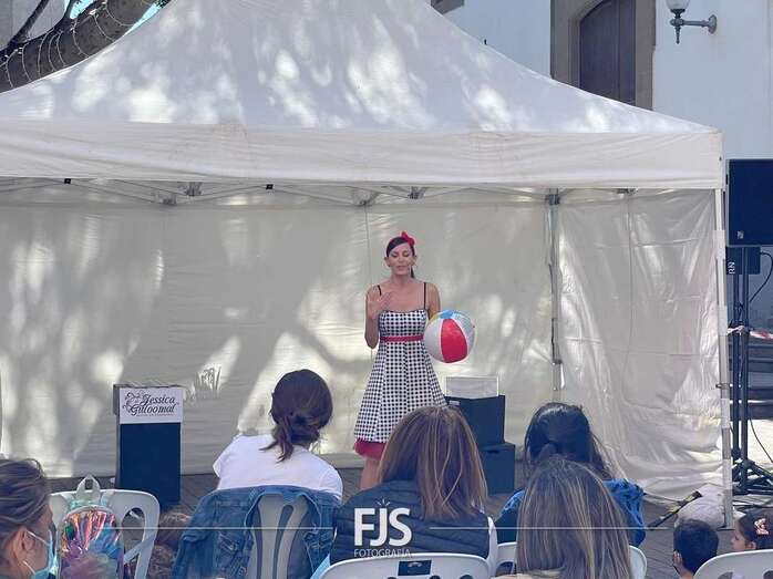 La plaza de San Grergorio acogió este sábado, al mediodía, el espectáculo familiar La magia de Jessica Guloomal. Un show de ilusionismo organizado por la Concejalía de Cultura del Ayuntamiento de Telde y al que asistieron varias decenas de personas.