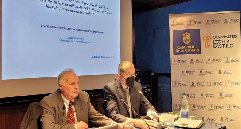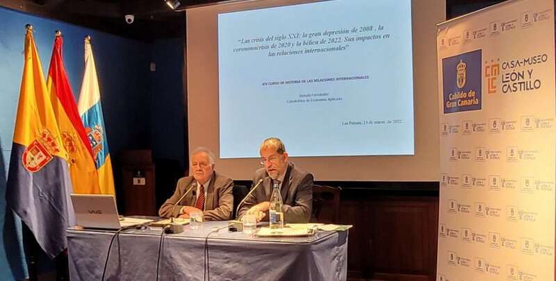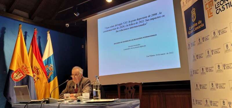 La crisis del siglo XXI fue el título de la tercera ponencia que impartió el doctor Donato Fernández Navarrete en Telde en el marco del XIV Curso de Historia de las Relaciones Internacionales que, bajo la dirección del profesor Javier Ponce Marrero, se ha desarrollado en la Casa Museo León y Castillo de Telde.