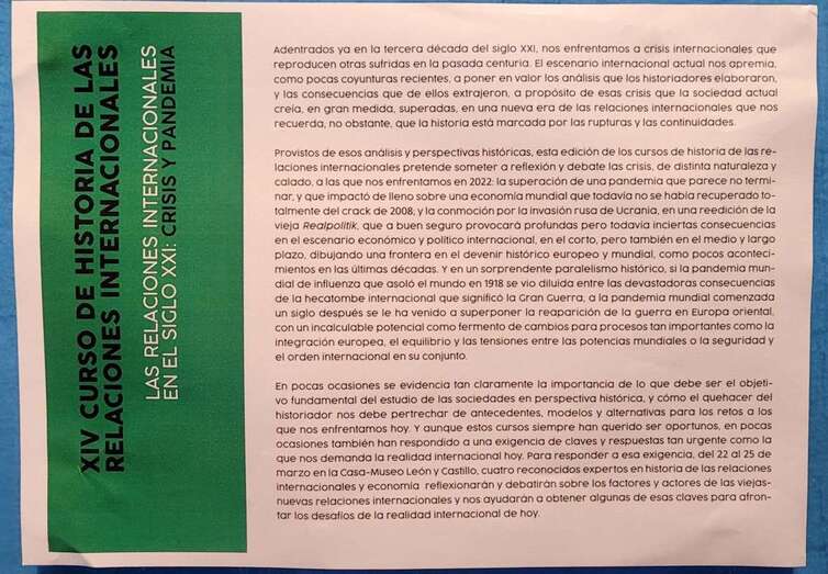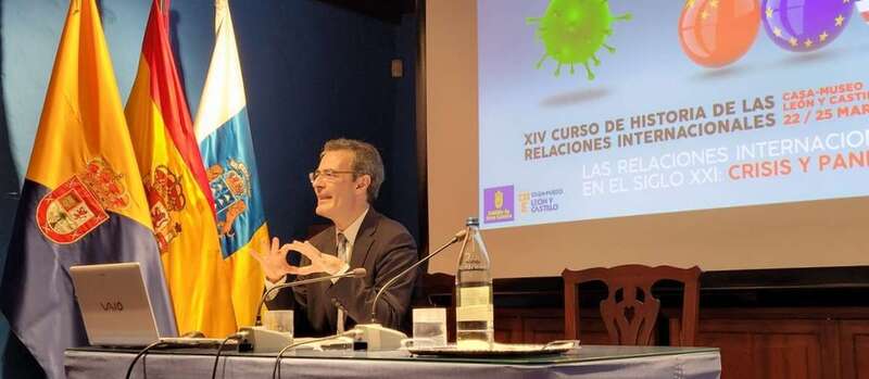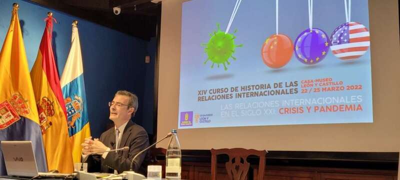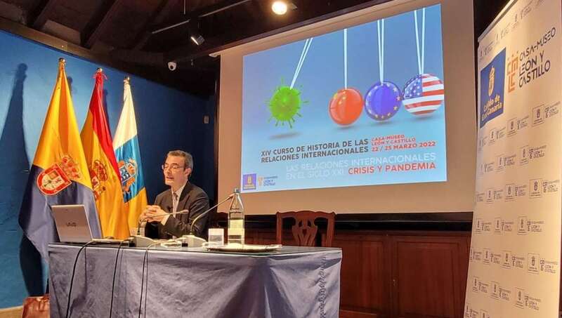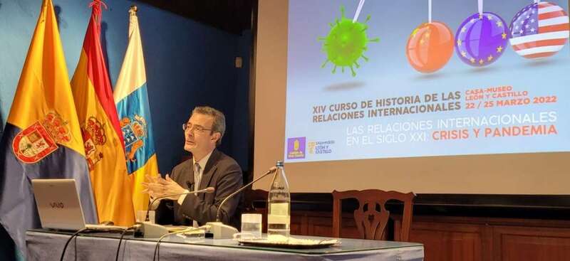 Con la cuarta y última ponencia Las Relaciones Internacionales hoy, impartida el viernes 25 de marzo por el profesor Dr. Ricardo Martín de la Guardia, catedrático de Historia Contemporánea de la Universidad de Valladolid, se culmina el programa establecido en esta edición aún de año pandémico 2022, del XIV Curso de Historia de las Relaciones Internacionales que se viene desarrollando desde el martes 22 en la Casa Museo León y Castillo de Telde, curso que dirige el Profesor titular de Historia Contemporánea de la Universidad de Las Palmas de Gran Canaria, Javier Ponce Marrero.