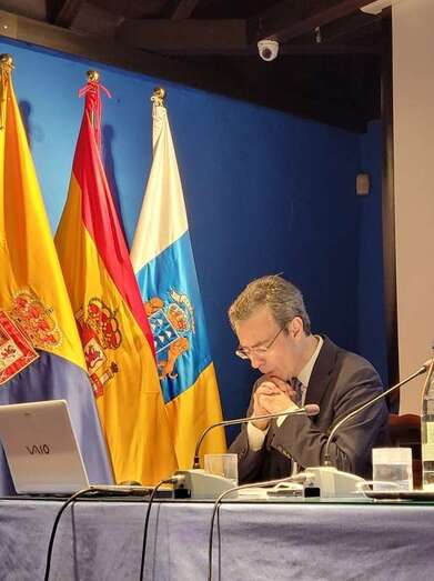 Interviene el profesor Dr. Ricardo Martín de la Guardia agradeciendo la bienvenida y presencia una vez más en los Cursos de Historia de las Relaciones Internacionales invitado por el director del Curso, Javier Ponce, un honor estar en estas jornadas que desde hace tiempo viene colaborando y participando desde la Casa Museo León y Castillo en Telde, y en esta ocasión en el contexto actual en el que dichas relaciones están tomando todas las características de un análisis y reflexión como se han venido impartiendo hasta ahora en las ponencias que se han impartido.