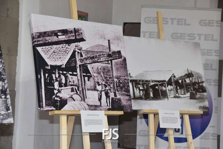 En esta propuesta se exhiben, a través de alrededor de 50 paneles sobre caballetes, las fotografías antiguas, los planos, mapas y figuras que muestran los paisajes del Monte y la Caldera vinculados a los lagares, cultivo de la vid y el entorno medioambiental, desde 1880 hasta la década de 1960.