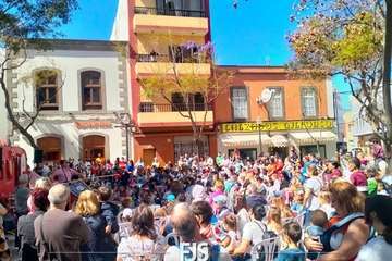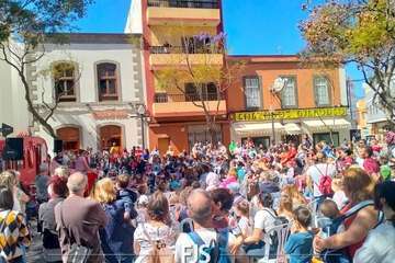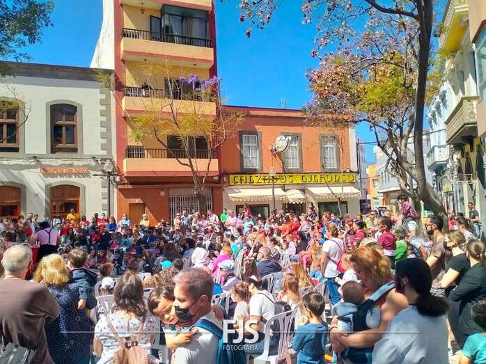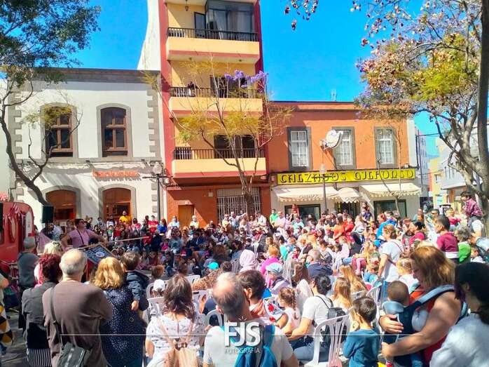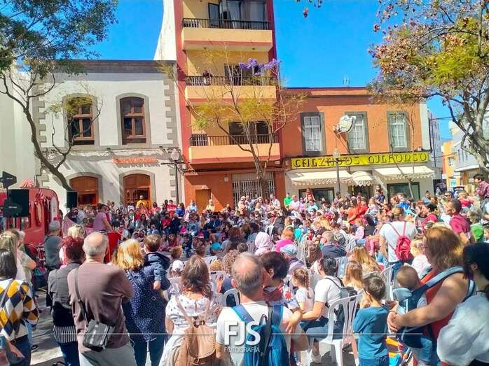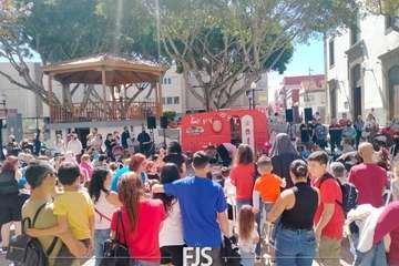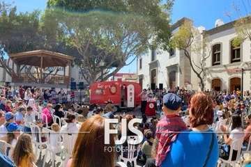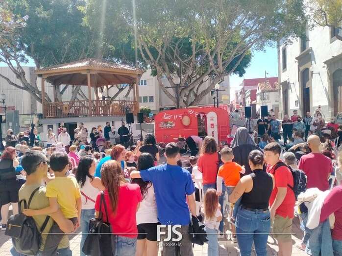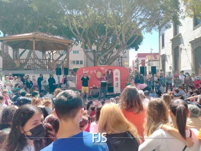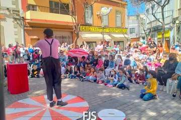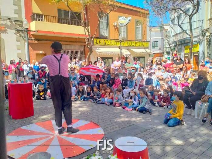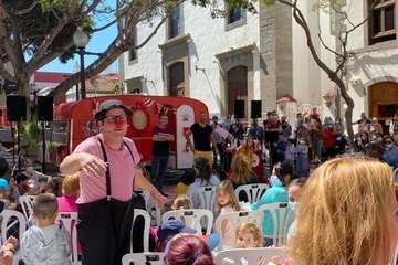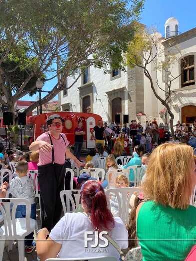 Cientos de personas de todas las edades disfrutaron este mediodía en la plaza de Los Llanos de Telde con el espectáculo familiar La Circoneta. El payaso Totó revivió tiempos pasados en los que las caravanas de los circos viajaban de pueblo en pueblo para llevar la ilusión a todos los rincones.