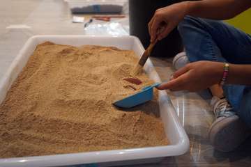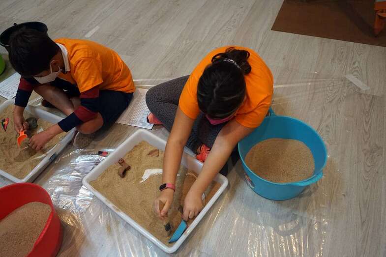 Arkeódromo. ¡Conviértete en arqueólog@! es el título del taller infantil que celebró este martes en El Museo Canario dirigida por Arkeós Arqueología, empresa del especialista teldense en la materia Abel Galindo.