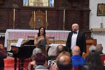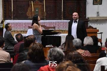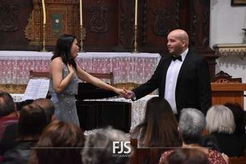 La iglesia conventual de San Francisco acogió este jueves el concierto del tenor teldense Gabriel Álvarez y la soprano Abenauara Graffigna, acompañados al piano por Nauzet Mederos. Un espectáculo en el que los intérpretes ofrecieron un recital de ópera y zarzuela.