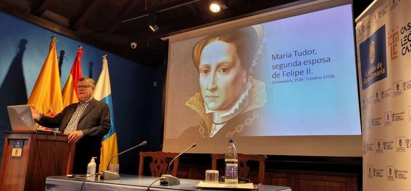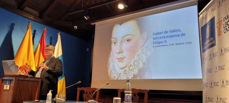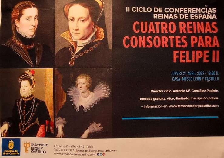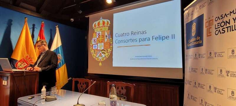 En torno al rey Felipe II y sus cuatro matrimonios reales se inicia la tercera cita con el ciclo Reinas de España que con el título de la conferencia “Cuatro Reinas Consortes para Felipe II”, impartió la tarde del jueves 21, el Cronista Oficial de Telde, Historiador y Académico Correspondiente de la Real de la Historia, Antonio María González Padrón, en la Casa Museo León y Castillo de Telde, institución Museística dependiente de la Consejería de Cultura del Cabildo de Gran Canaria.