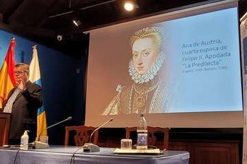 El historiador y cronista oficial de Telde, Antonio María González Padrón, abordó en una conferencia que tuvo lugar en la Casa Museo León y Castillo las cuatro reinas consortes para Felipe II, en el marco del ciclo Reinas de España.