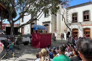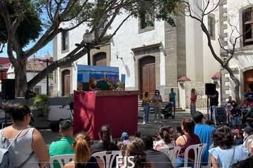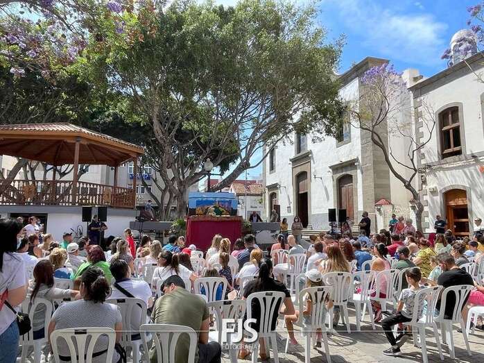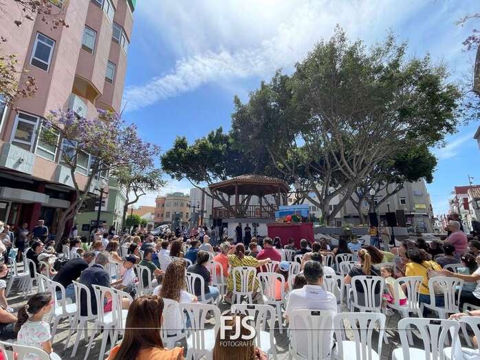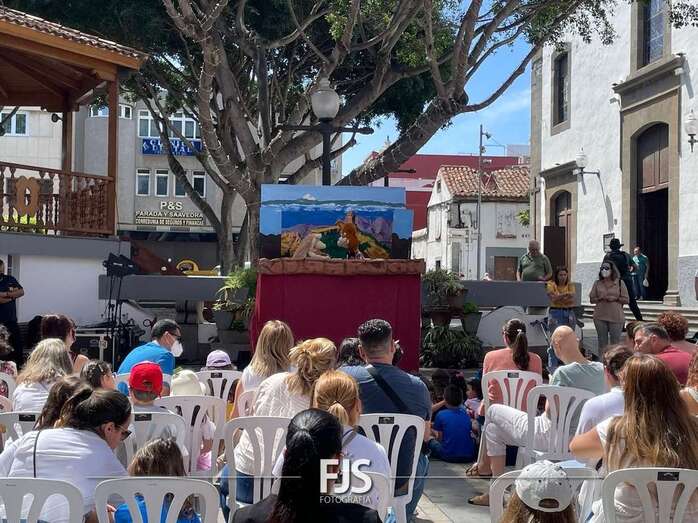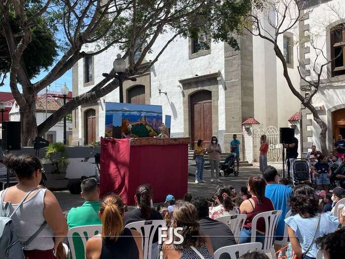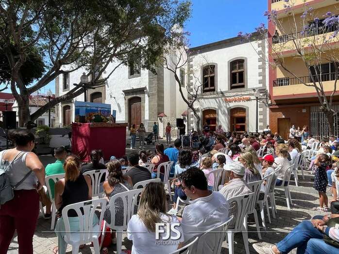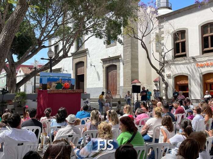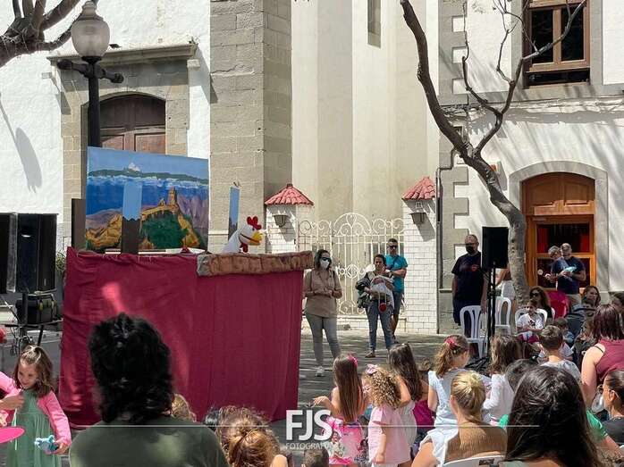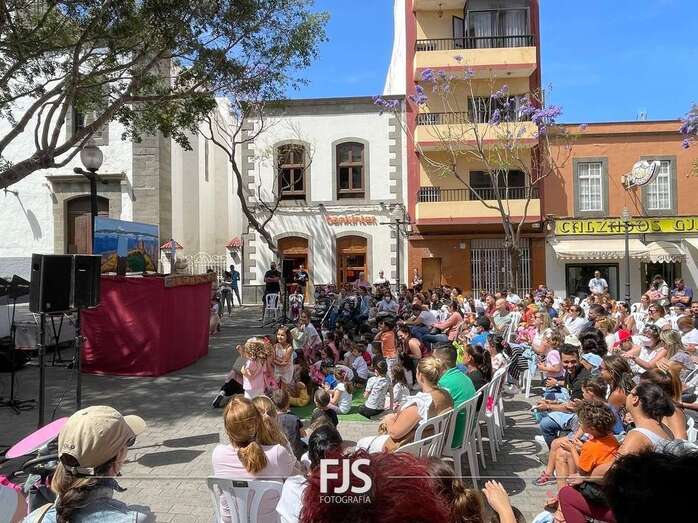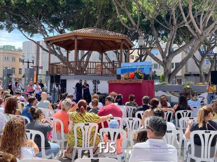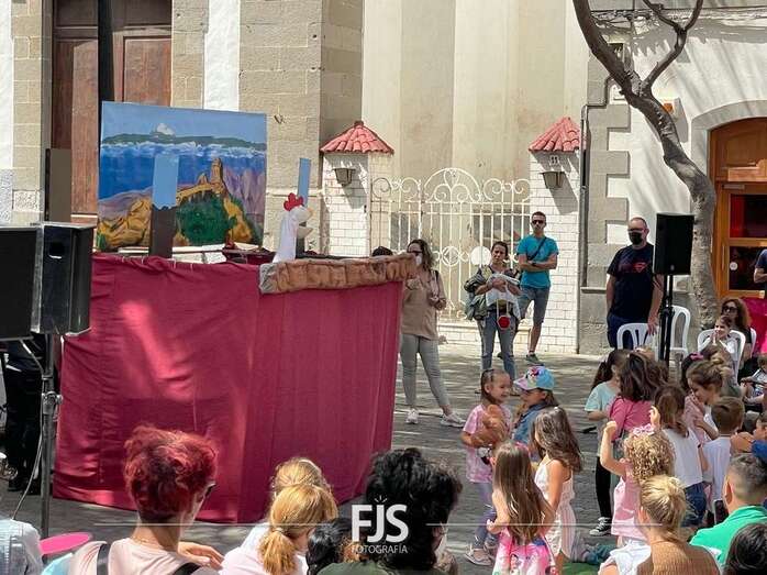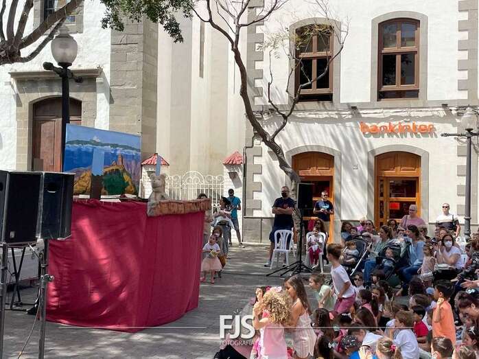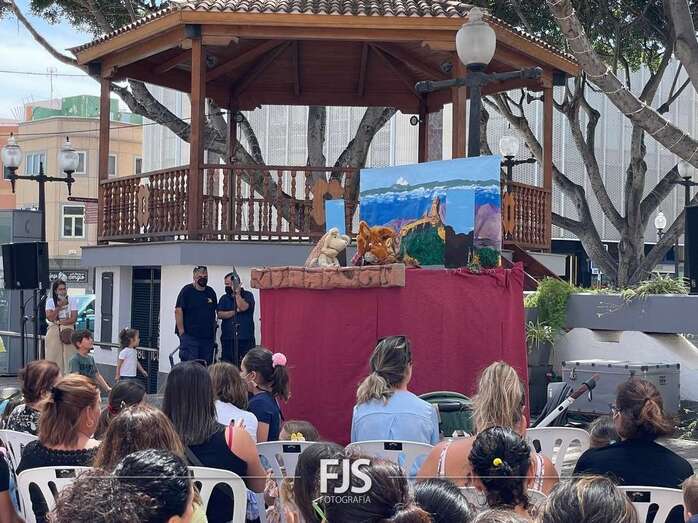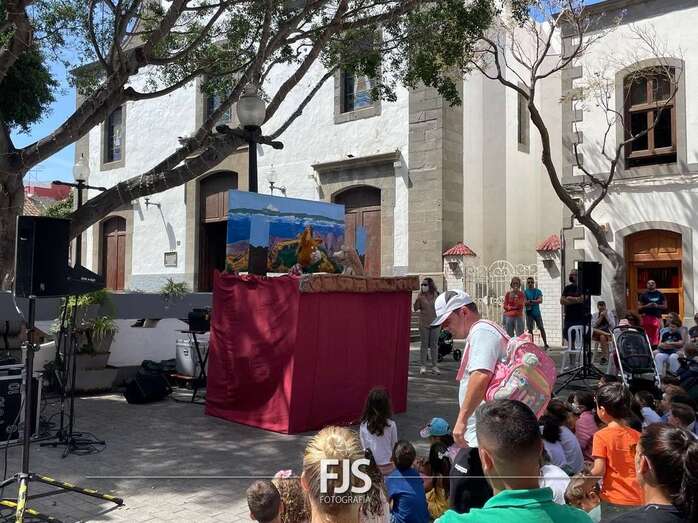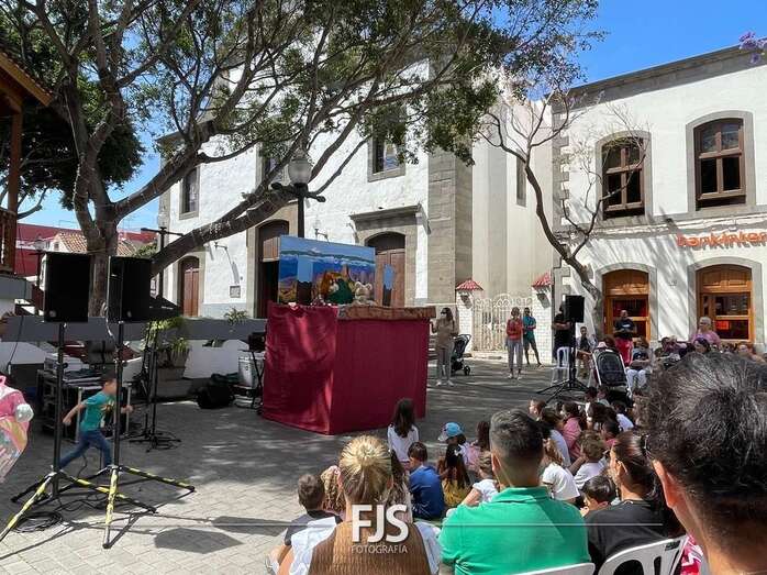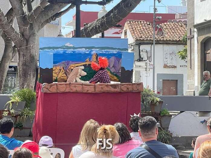 El espectáculo de títeres Púas quiere cantar, que tuvo lugar este mediodía en la plaza de Los Llanos de Telde, organizada por la Concejalía de Cultura, concentró el interés de decena de niños de todas las edades.