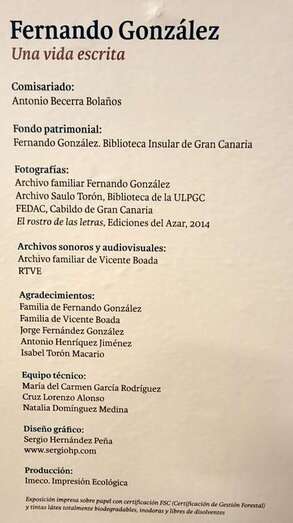 Creo que este libro y esta exposición viene a ser un acto de justicia con un poeta que dio mucho a la gente que conoció, y en un acto tan generoso como donar una de la colección de literatura de la Edad de Plata más importante del Archipiélago y Nacional que es la que custodia la Biblioteca Insular. Quiero agradecer a Fernando González que lo hiciera y cuando en el año 1971 quería, en conversaciones con Alfonso Armas, que su biblioteca estuviera en Telde. En aquel momento no sabía que iba a aparecer una Biblioteca como la Insular en una isla y una ciudad como Las Palmas de Gran Canaria, que custodia unos fondos maravillosos. En ese sentido esta Exposición viene a ofrecer una mínima parte de los 17.000 volúmenes que se custodian aquí y el epistolario con cartas de lo más granado de la poesía y autores del momento, cartas de los Modernistas, Saulo Torón, Montiano, cartas de Guillen, de Gerardo Diego, Dámaso Alonso, Rodríguez Moñino, etc, etc.