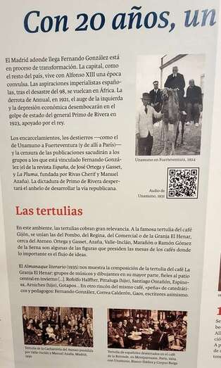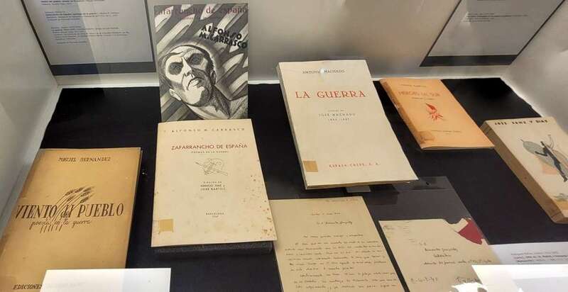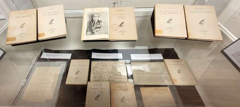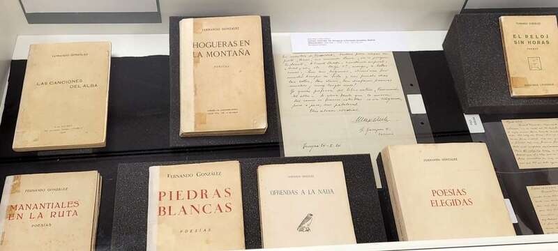 Referencias literarias en las que Fernando González a lo largo del recorrido por la exposición siempre está ahí, entre escritores y escritoras que llenaron el mundo de la literatura de su época, la Literatura de la Edad de Plata y, como joyas, auténticas antologías, textos, como el libro que publica Antonio Machado durante la Guerra Civil, libros que guardó Fernando González.