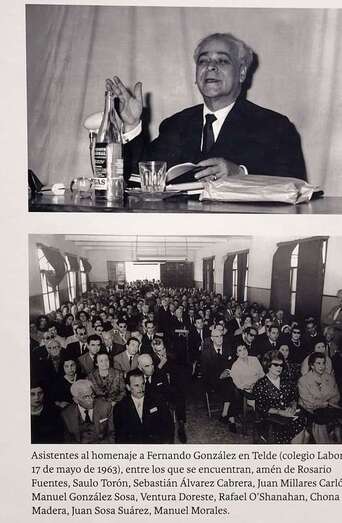 La ciudad de Telde tuvo la suerte a finales del siglo XIX y buena parte de la primera mitad del siglo XX de tener una serie de escritores, poetas, que cantaron de forma íntima, no solamente su propia vida, sino la de la ciudad, la vida de la isla y de esta gran ciudad que hemos hecho entre todos que es Las Palmas de Gran Canaria. Nos trajeron a Fernando González varias veces a Telde y una de ellas gracias al empeño del director del Colegio Labor de Telde, don Alejandro Dávila León, y después, cómo no, el maestro, la persona que más ha influido de forma intelectual en mi vida, Alfonso Armas Ayala. Alfonso no solamente leía continuamente a Fernando, sino que lo defendía en los foros en donde se hablaba de los diferentes autores, sino que lo quería entrañablemente.