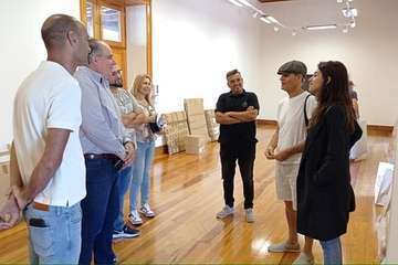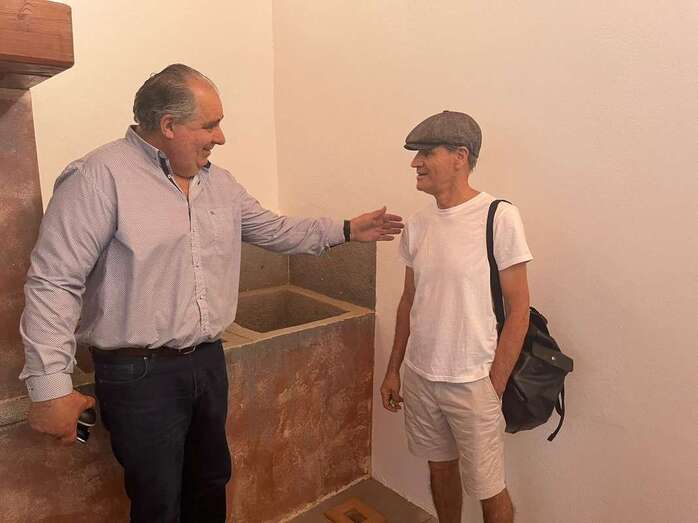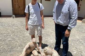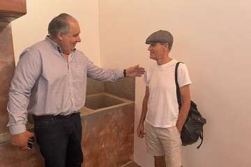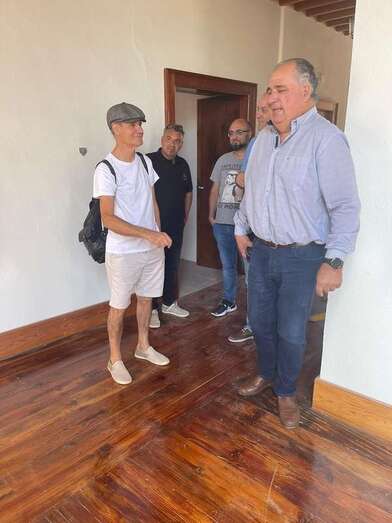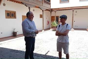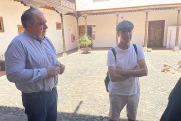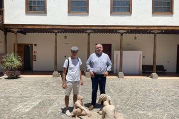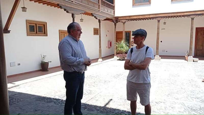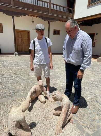El montaje de la muestra, que podrá visitarse hasta el 4 de junio, fue supervisada ayer por el propio Luis Morera durante una visita que giró al histórico inmueble del conjunto monumental de Telde, acompañado de su promotor artístico, el teldense Juanfra Suárez Ojeda.