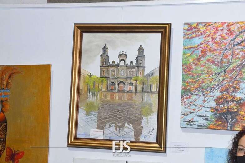 Con el propósito de recaudar fondos que serán íntegramente destinados a La Palma y los damnificados por la erupción de Cumbre Vieja, esta mañana se inauguró en la ermita de San Pedro Mártir de Telde la exposición Una pintura por La Palma.