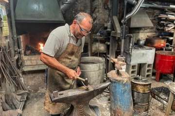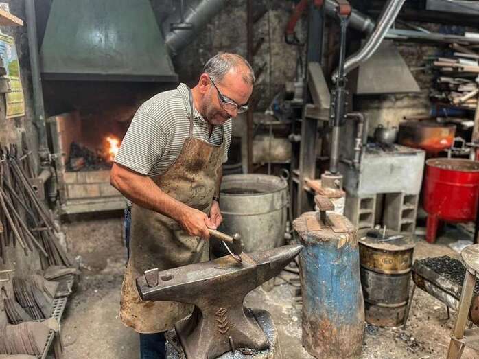 El teldense Santiago Medina Caballero es un artesano herrero que proviene de una extensa saga de artesanos, ya que no solo su abuelo Daniel y su padre también del mismo nombre se dedicaron a ello, sino que este arte se remonta incluso a su bisabuelo Tomás, herrero en San Bartolomé de Tirajana. En la actualidad se investiga si pueden existir antepasados que ya en el siglo XIX se dedicaran a esta profesión. En la actualidad desempeña esta labor en su taller y fragua que ha llamado Herrería Daniel, situada dentro de la Finca Suárez, en El Calero. Es el único herrero en activo en el municipio y gran parte de su trabajo está dedicado a la manufactura de elementos de la fragua tradicional, aunque también sabe dar rienda suelta a su creatividad a través del forjado de diseños artísticos. Todo aquel que se encuentre interesado, puede visitar su herrería todos los sábados, tanto en horario de mañana como de tarde.