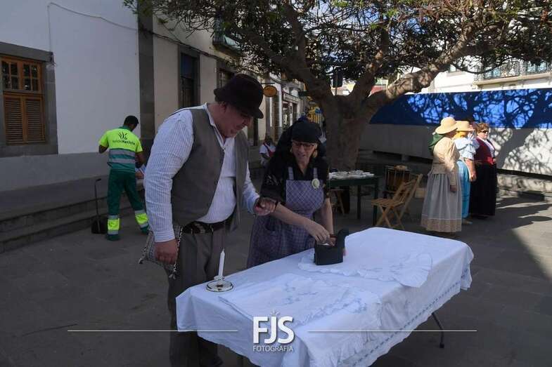 Talleres artesanos, exposición de juguetes tradicionales, recreación por integrantes de la AV El Roque Azucarero de escenas canarias y antiguos oficios como las lavanderas, planchadoras, la descamisada del millo o cómo se partían las almendras, exposición y venta de artesanía tradicional y productos de la tierra, y las actuaciones de grupos folclóricos, de la Banda Municipal de Música y de la Banda de Agaete, una de las invitadas estrellas de la jornada.