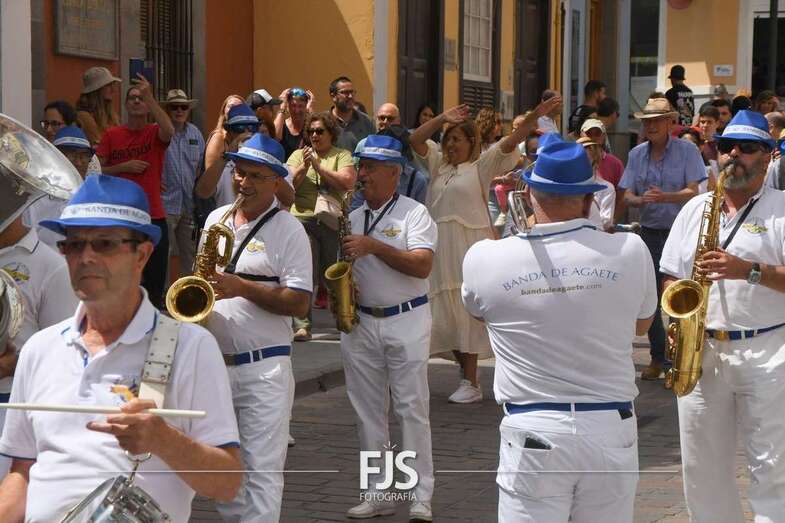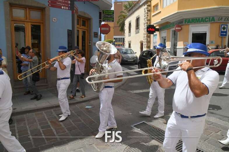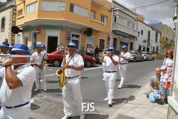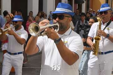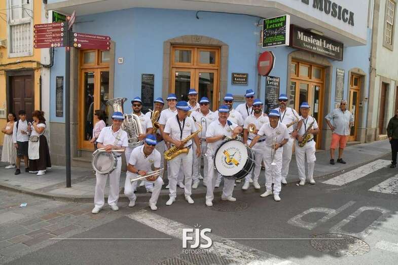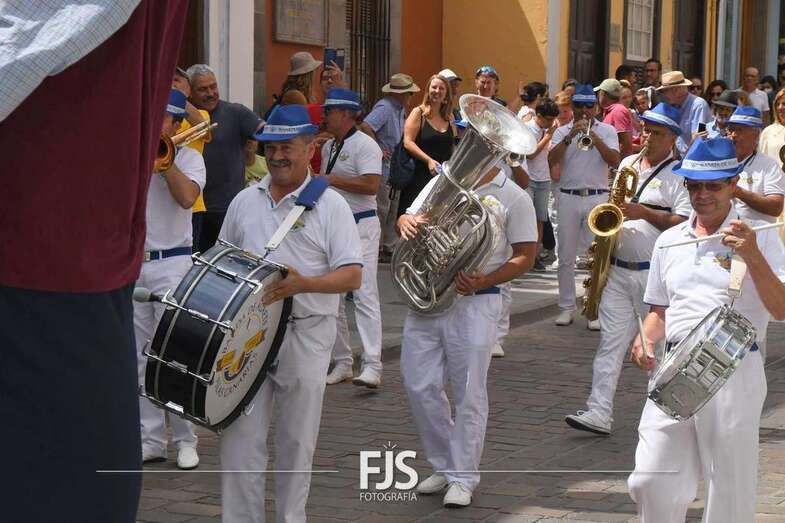 La agrupación que atesora más de 100 años efectuó un alegre recorrido por la calle principal del casco viejo de la ciudad, entre la esquina de Pérez Camacho con León y Castillo y el recinto público, donde con su música contagiosa puso en movimiento a los centenares de personas de todas las edades que estaban disfrutando en la plaza de San Juan y su entorno de las variopintas actividades organizadas por la Concejalía de Cultura que dirige el edil Juan Martel con motivo de la festividad de la Comunidad Autónoma.