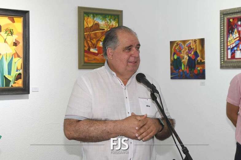 El acto inaugural contó con la presencia del concejal de Cultura, el centrista Juan Martel, y del gerente de la empresa pública Gestel, Jesús Suárez, así como de la exedil María González Calderín, amiga de la pintora.