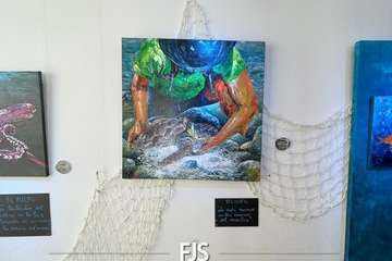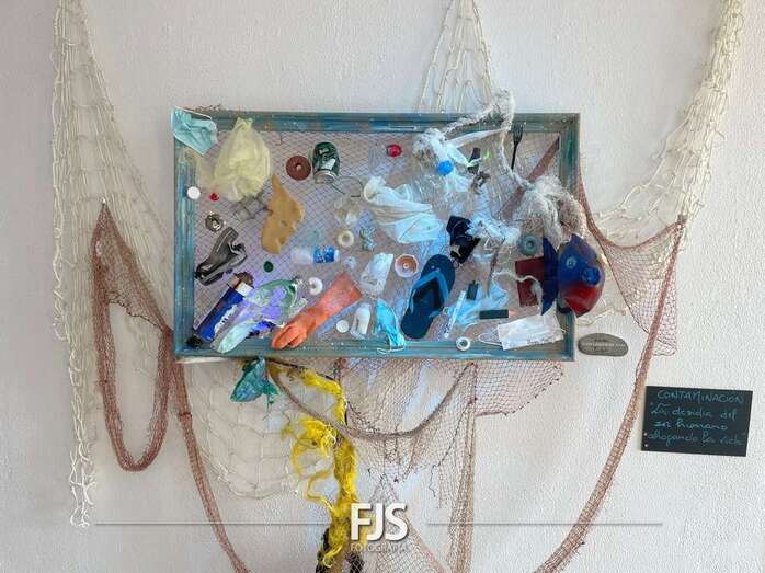 Se trata de una muestra organizada por la Concejalía de Cultura que dirige Juan Martel y la empresa pública Gestel, que incluye algunas obras realizadas con el reciclaje de basura para denunciar el mal estado del litoral y de los mares.