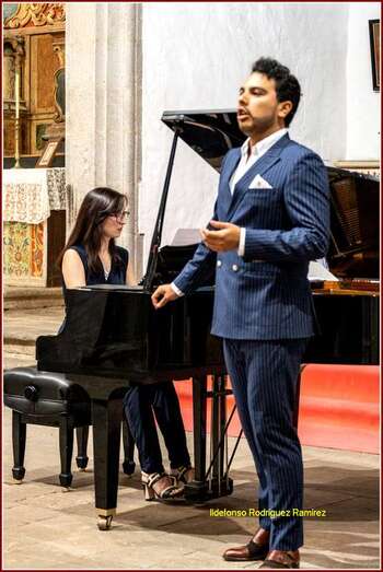 Tal y como se había anunciado, la cita musical, que contó con una buena asistencia de público, tuvo como protagonista al tenor mexicano Leonardo Sánchez, quien deleitó, junto a la pianista italiana Alice Lapasin, a los asistentes al evento.