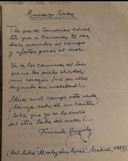 TELDEACTUALIDAD rescata dos poesías escritas con puño y letra por el poeta y profesor teldense Fernando González Rodríguez, en el 50 aniversario de su fallecimiento ocurrido en Valencia el 24 de junio de 1972.