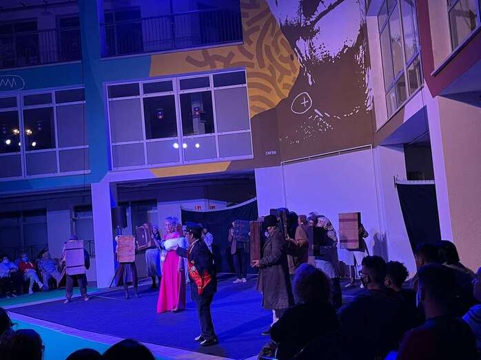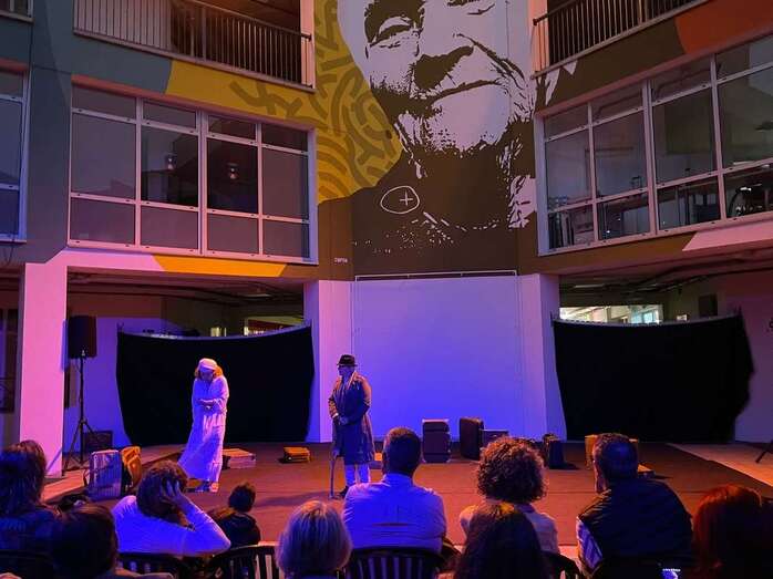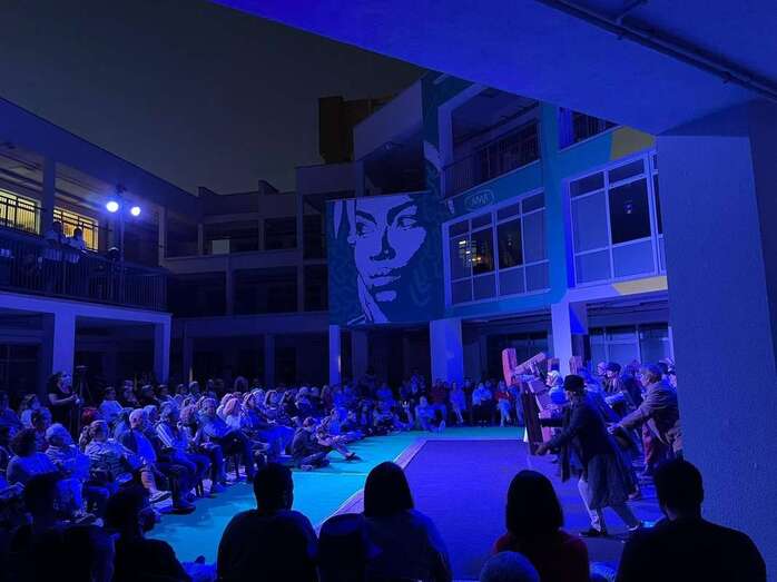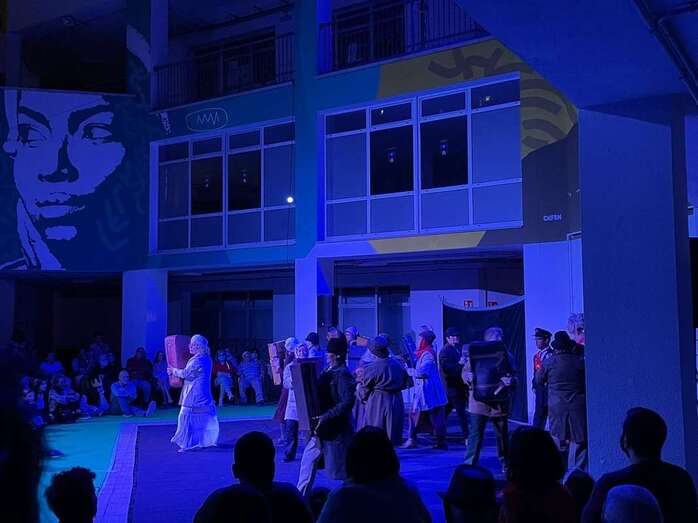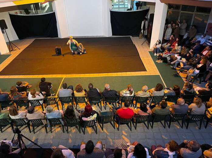 El Encuentro de Teatro Popular de Telde, que se celebra por primera vez en sus 16 años de historia en Jinámar, arrancó este miércoles con gran éxito en el patio central del Centro Cívico (antigua Gerencia).