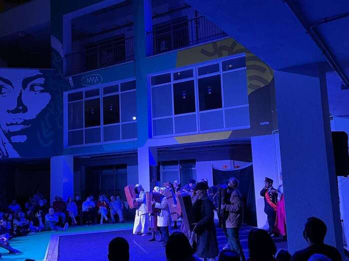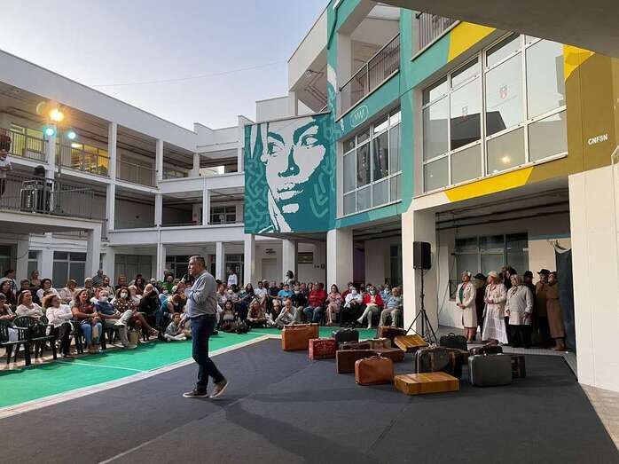 Por su parte, Sergio Placeres resaltó el significado de sacar por primera vez el encuentro de un teatro convencional hasta el patio de un barrio porque “cumple con su esencia, de ahí nace y de ahí se puede desarrollar”. Al mismo tiempo destacó que “con este formato todos los presentes pueden disfrutar de obras que hablan de la familia, de los problemas cotidianos y desde la cercanía”. Además, recalcó que llevarlo hasta Jinámar ha sido “un acierto porque además se podrá conocer más en profundidad el potencial cultural y los valores de diversidad, humanos y patrimoniales que alberga el barrio”.