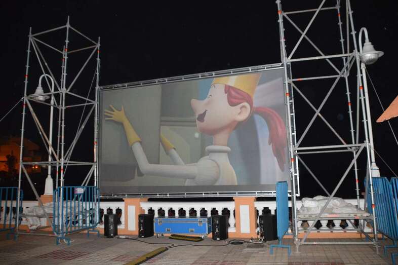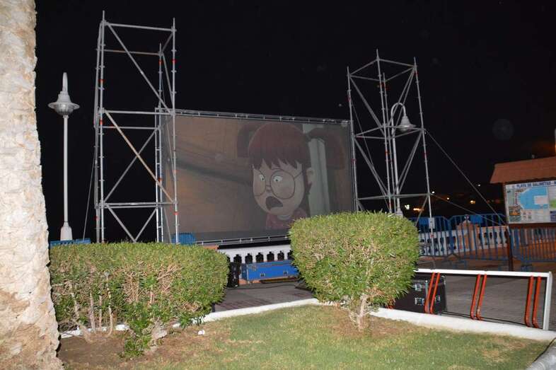 El Cine de Verano llenó esta noche de personas de todas las edades el sector de la playa de Salinetas más próximo al paseo marítimo donde se colocó la pantalla para la proyección de la película.