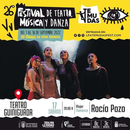 La compañía de danza flamenca de la bailarina y coreógrafa Rocío Pozo, radicada en Telde, representará el sábado 17 de septiembre (20.00 horas) la obra Mujer en el Teatro Guiniguada dentro del Festival de Teatro, Música y Danza Temudas.