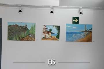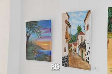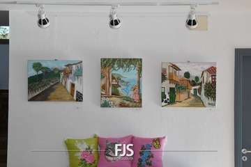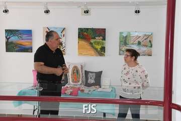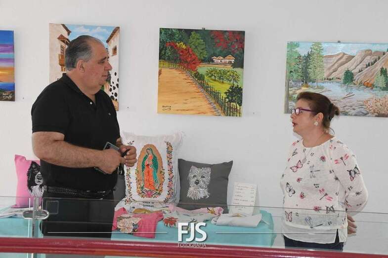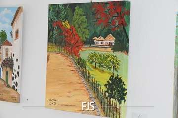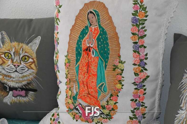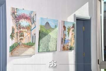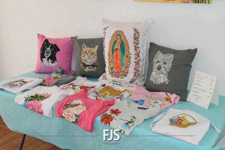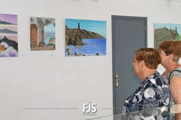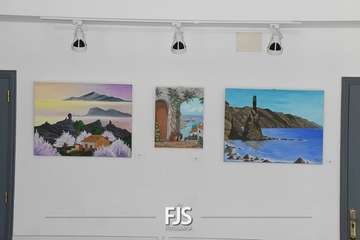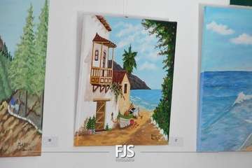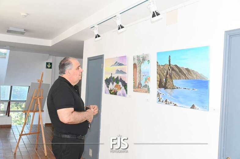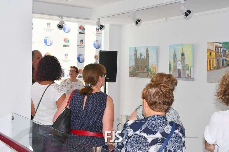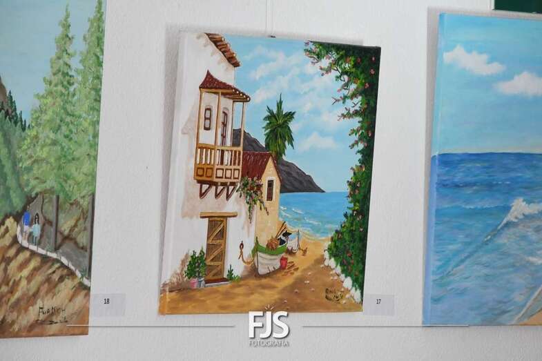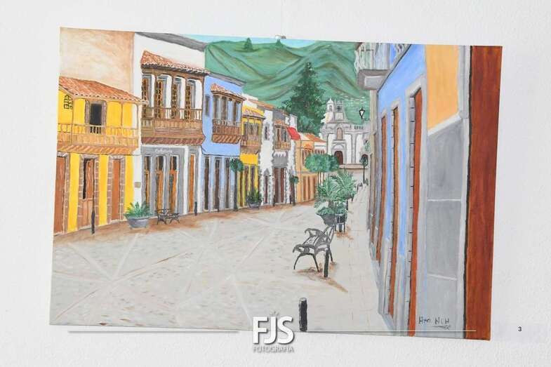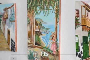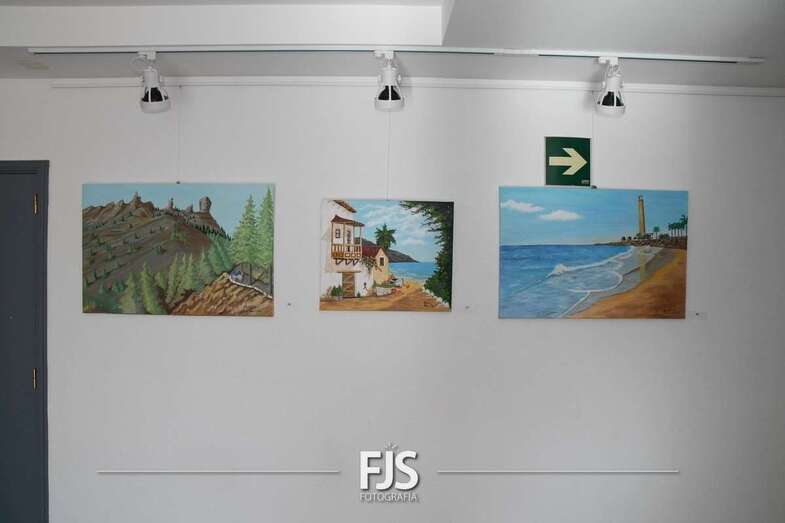 En la muestra, la pintora exhibe sus últimos trabajos, una treintena de lienzos al óleo, bodegones y paisajes canarios, y una pequeña muestra de cojines y camisetas pintadas.