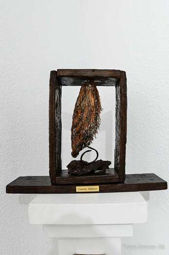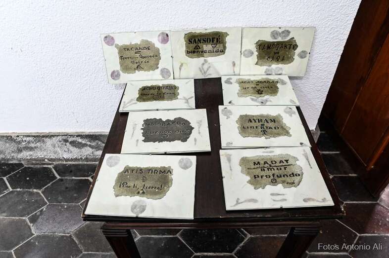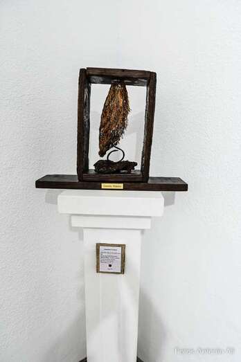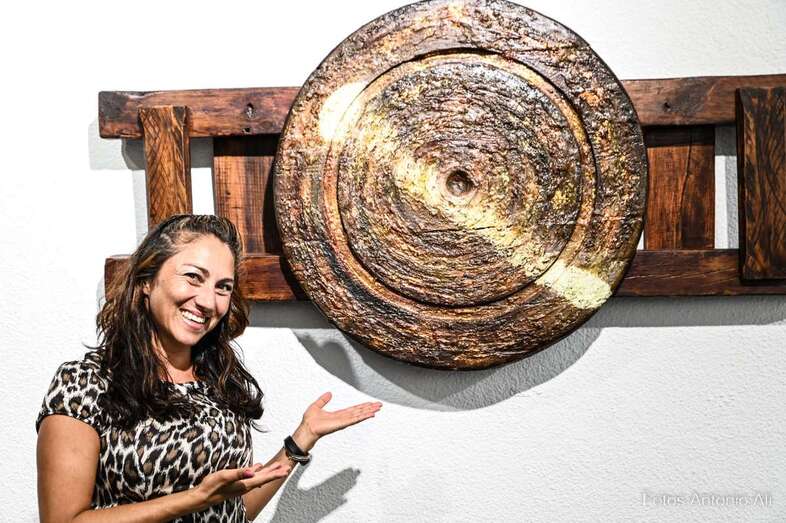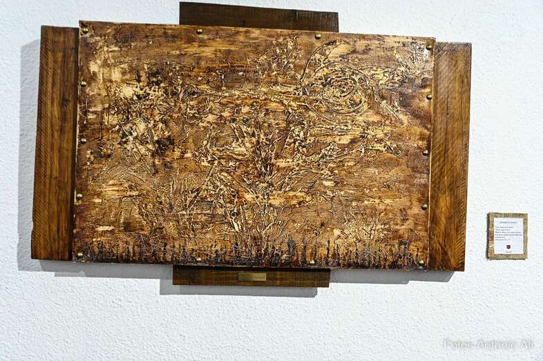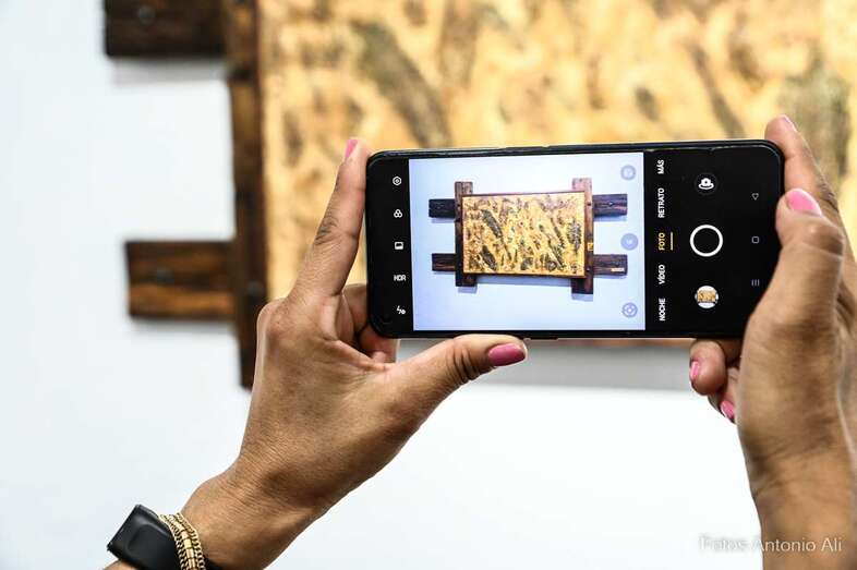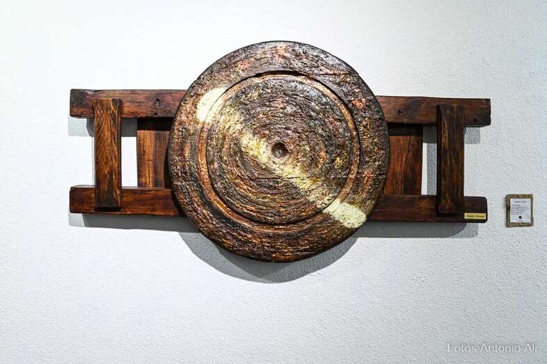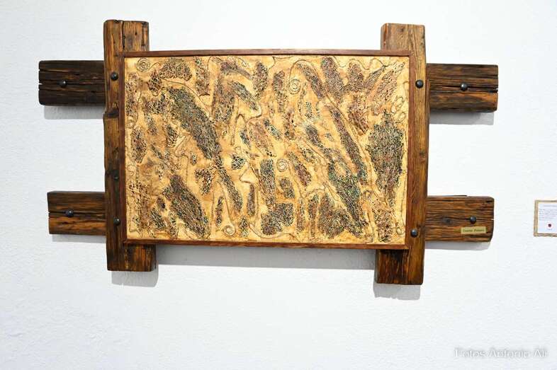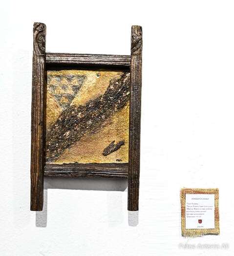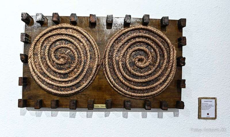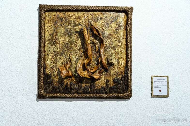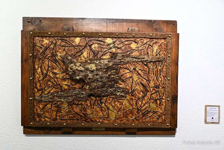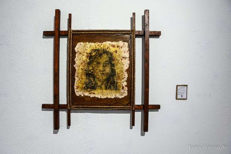 Iconografía Canaria es una muestra en la que la artista quiere homenajear no solo el territorio, sino su historia de valentía y honradez, su lucha por la libertad y el amor a la patria. Son obras elaboradas con madera reciclada y elementos naturales y los colores empleados son preparados por ella misma.