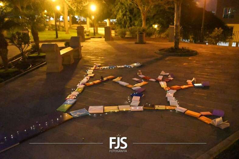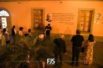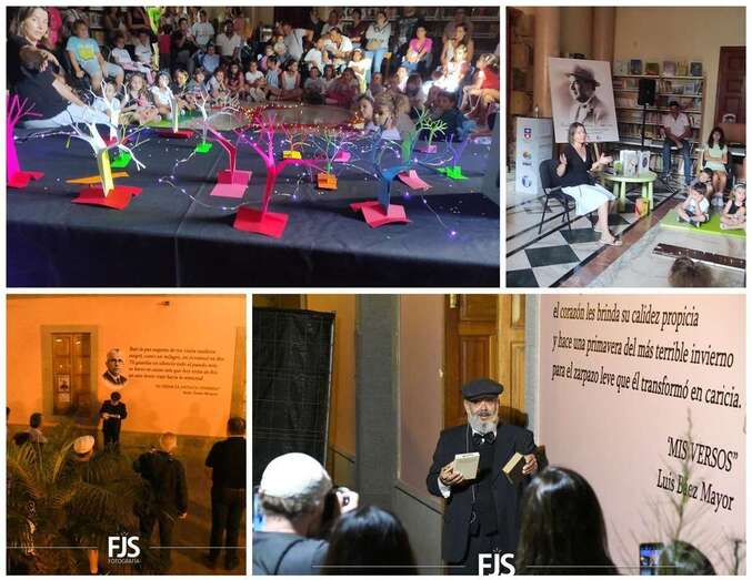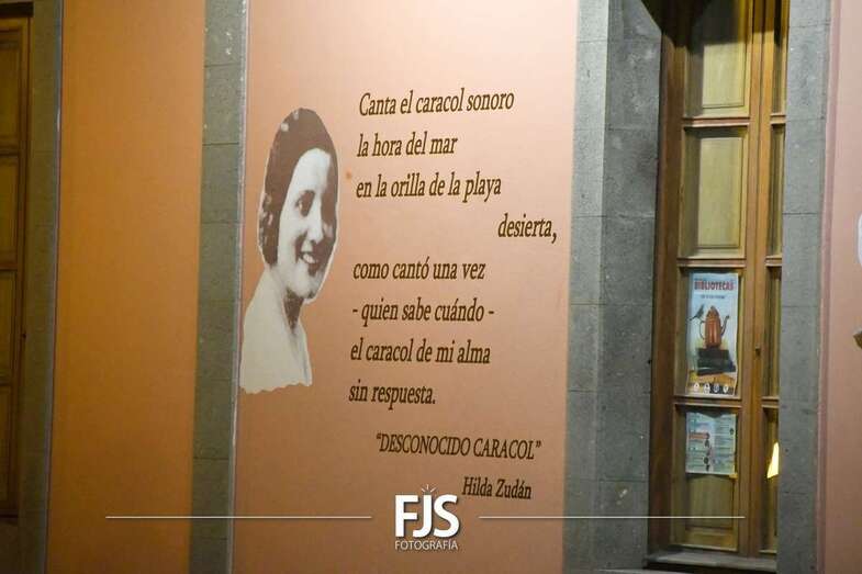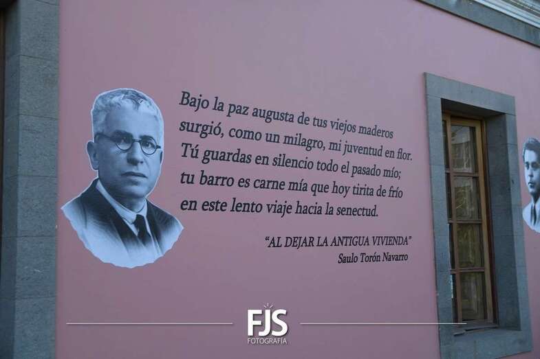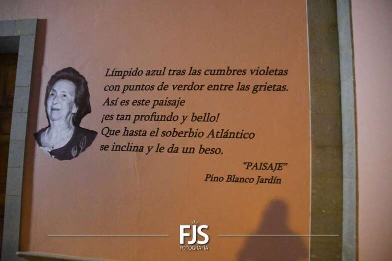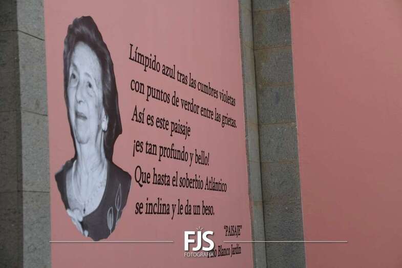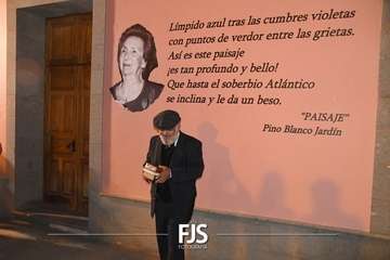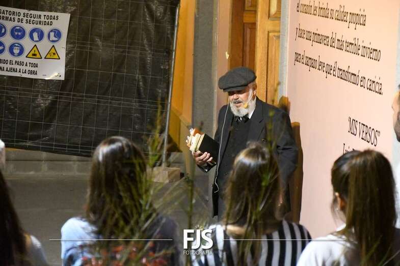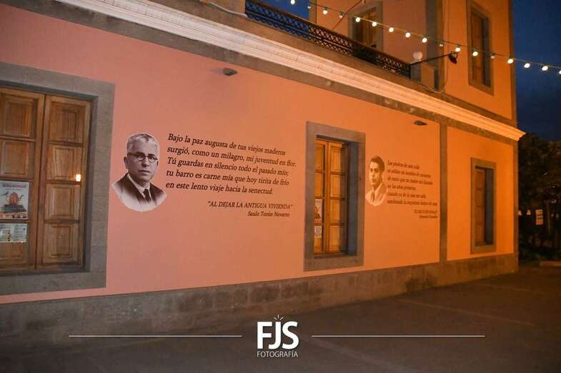Posteriormente, a las 19.30 horas, se desarrolló inauguración de textos literarios y una lectura dramatizada. Para esta actividad se decoró la fachada de la Biblioteca Saulo Torón con citas de los grandes e ilustres poetas de la Escuela lírica de Telde para visibilizar y dar a conocer la obra de los escritores de una manera más visual, atractiva, artística y lúdica.