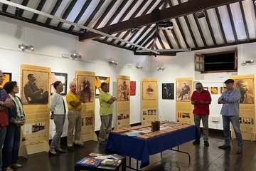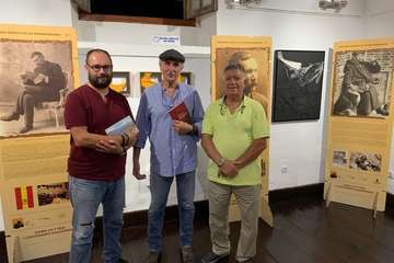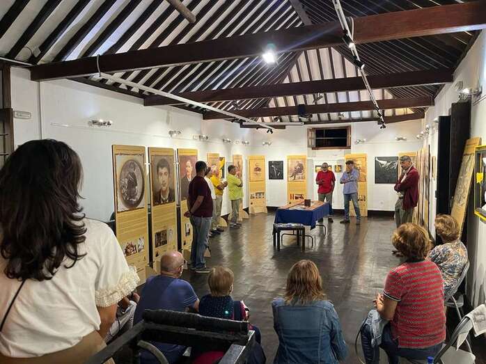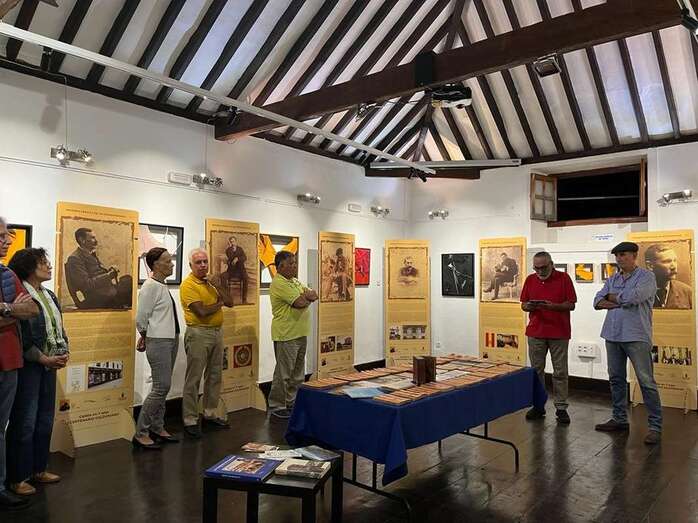 La sede del colectivo exhibe una exposición de 16 paneles con fotografías del novelista grancanario