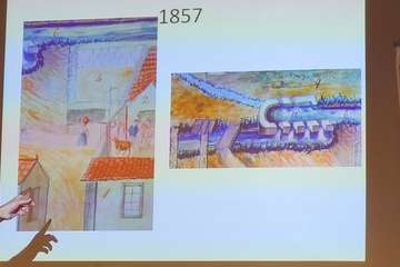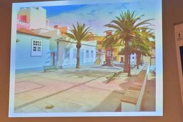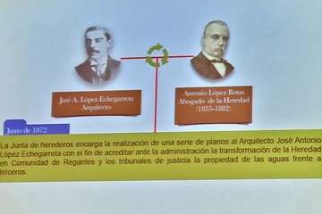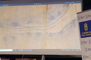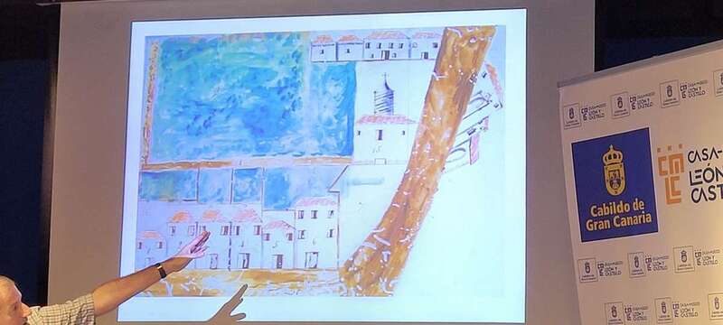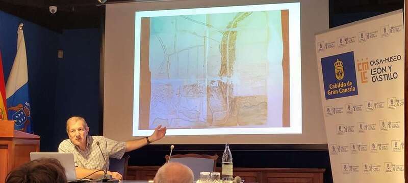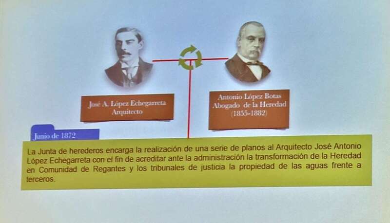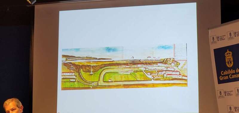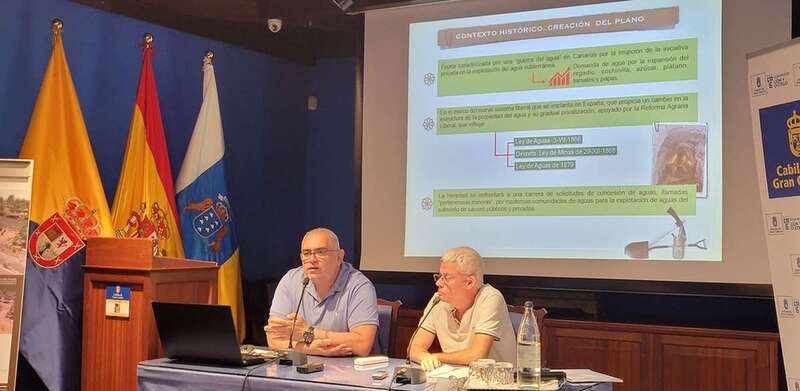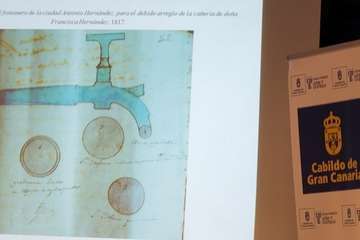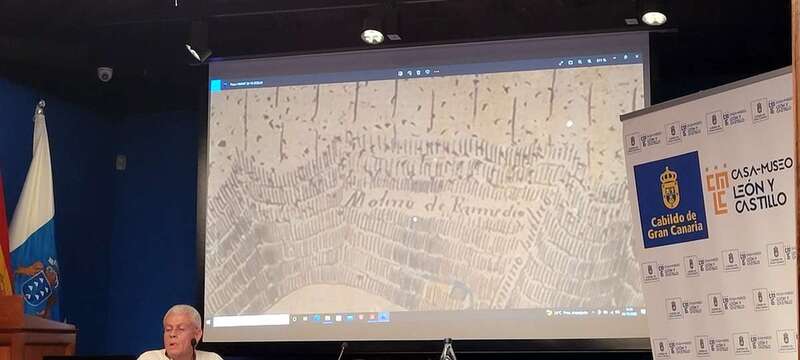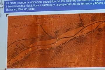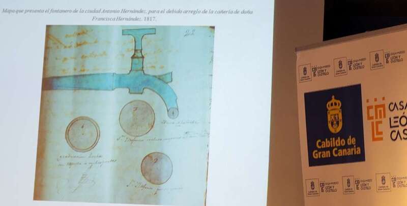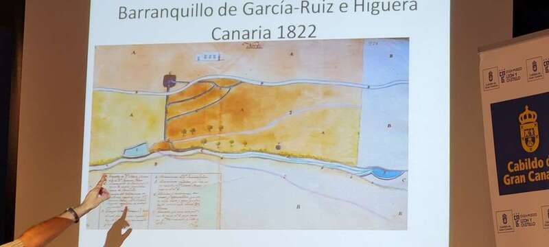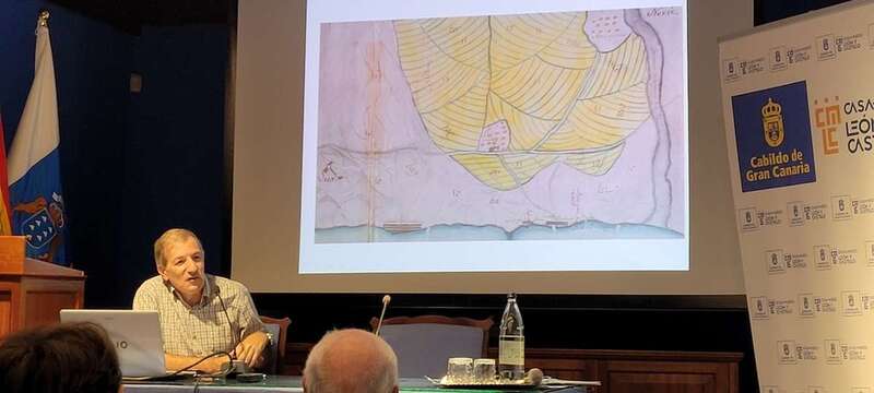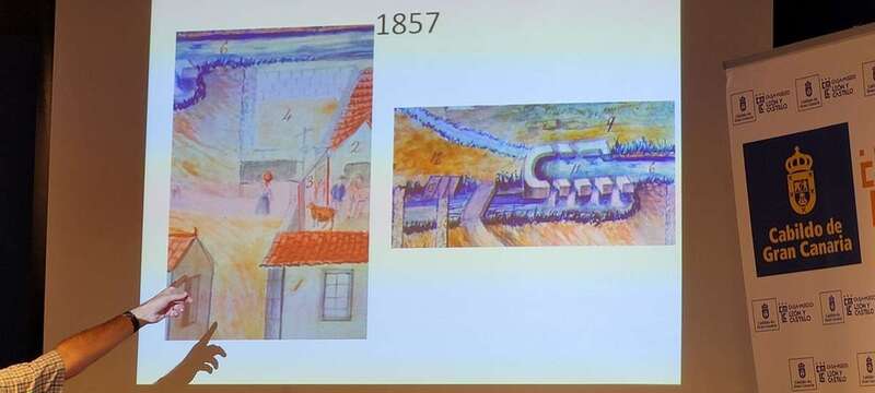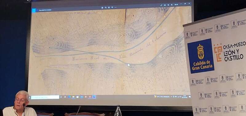 Dentro de unos momentos intervendrá el profesor Pedro Quintana hablará de aquellos paisajes y los usos del agua plasmados en pintores aficionados y profesionales que han dejado un testimonio gráfico excepcional de algunas zonas de las islas durante la modernidad. Seguidamente la digitalización del Plano General de las Aguas del Heredamiento de la Vega Mayor de Telde centrará la participación de quien les habla y de José Francisco Pérez Rodríguez de la Asociación Cultural Tyldet quien expondrá los trabajos de digitalización del voluminoso plano de 13 metros de largo realizado en 1875 por el arquitecto José Antonio López Echegarreta.