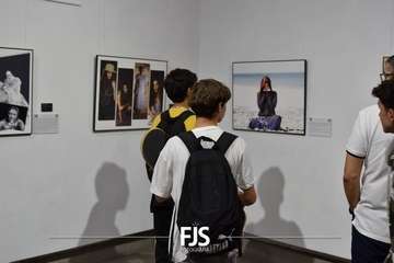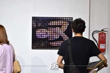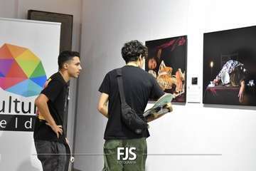 Dos jóvenes visionan los cuadros de la muestra/Ildefonso Rodríguez. Dos jóvenes visionan los cuadros de la muestra/Ildefonso Rodríguez.