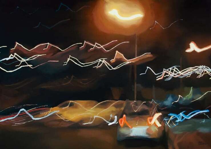 En la muestra ‘La noche como refugio’, que se inaugura el día 17 de noviembre en la Casa-Museo León y Castillo de Telde, "se podrá ver el recorrido que he llevado a cabo desde que comencé a pintar los nocturnos". No ha sido un camino muy largo, pero hay un notable cambio estético. "La luz y su movimiento forman parte importante de mi obra creativa", detalla la artista. "Tienen la capacidad, junto a la nocturnidad, de dotar de belleza y tranquilidad a estos paisajes que relacionamos con ruidos y estrés".
