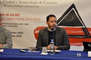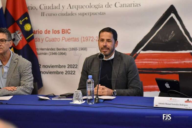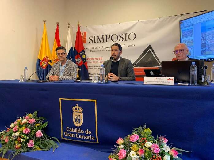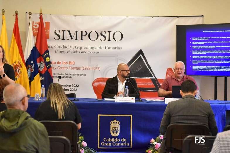 El yacimiento arqueológico de Cuatro Puertas, en Telde, cumple 50 años como Bien de Interés Cultural. Para celebrar esta efeméride, el director insular de Patrimonio Histórico, Sebastián Sosa, y el concejal de Patrimonio Histórico del Ayuntamiento de Telde, Héctor Suárez, mostraron en el I Simposio Territorio, Ciudad y Arqueología la placa conmemorativa ya instalada en el complejo prehispánico, acción llevada a cabo en colaboración con la dirección general de Patrimonio Cultural del Gobierno de Canarias.